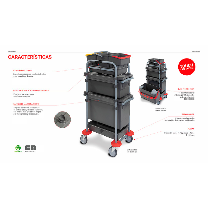 • Su tamaño y organización le confiere al carro una gran agilidad de movimientos, pero a su vez, es un gran recurso para ser utilizado como una cómoda estación fija.