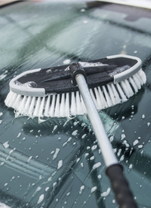 Raspall de fibra sintètica semidura amb sortida de líquid per la neteja manual de tendals, automòbils, camions, autocars, etc.