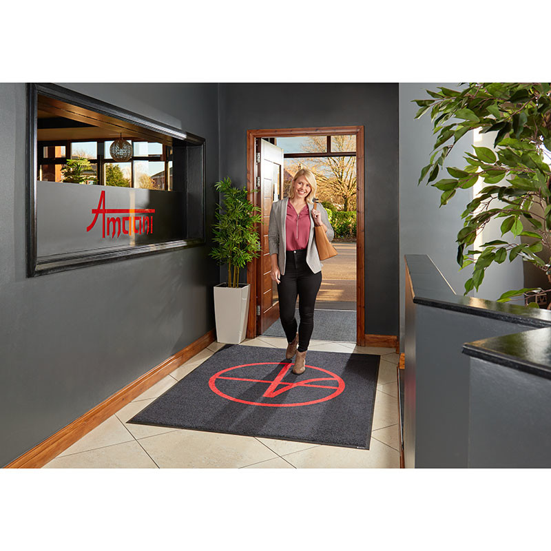 Alfombra textil personalizada. Puede incorporar cualquier dibujo, anagrama o texto.