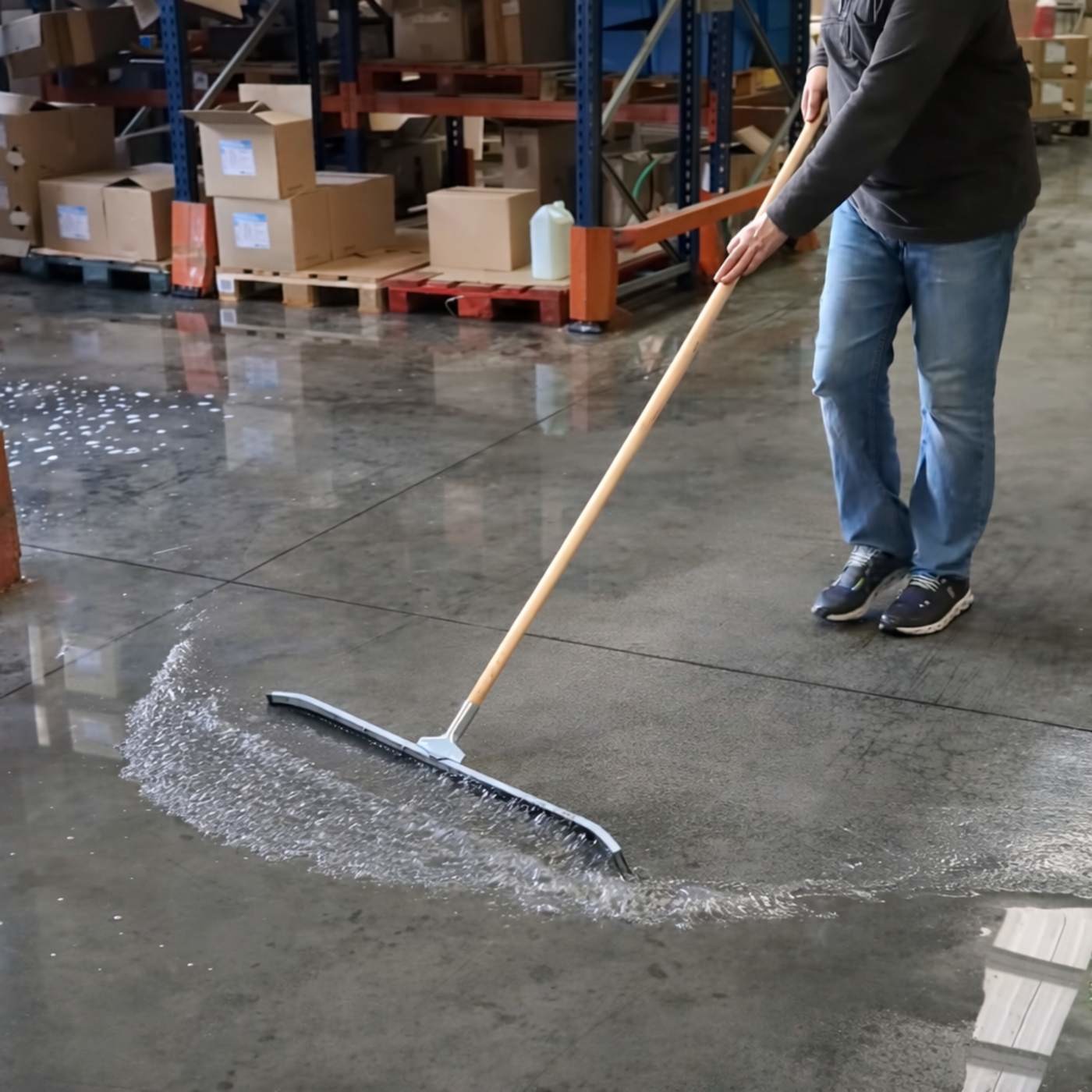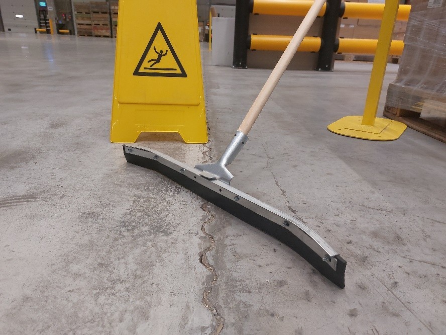 Haragán con bastidor metálico curvo y fijación reforzada. Labio de goma dura. Su geometría curva lo hace en indispensable cuando se trata de retirar cantidades importantes de agua y residuos.