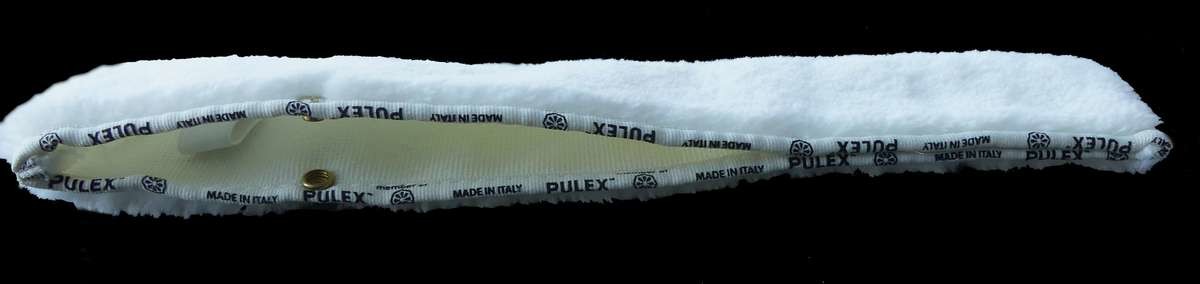 Fabricado con fibra acrílica painada y retorcida para darle un aspecto de lana sintética. El interior es de tejido gomoso y de efecto antideslizante.